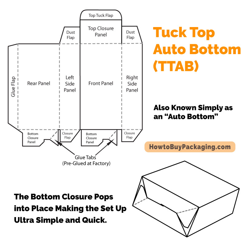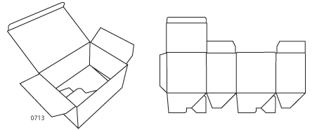 این فرم از جعبه ها با چسب زدن ۲ لبه های پایین از هر سمت براحتی با باز کردن آن می توان از جعبه آماده شده استفاده کرد. این جعبه های علاوه بر تحمل وزن زیاد به لحاظ نوع طراحی قالب آن، هنگام انبارش و حمل به کمترین فضا نیاز دارد. برای سایر قالب ها میتوانید به بخش دایکات مراجعه نمایید